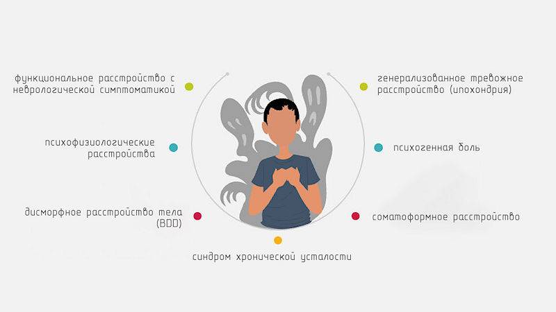 В чём разница между психосоматическим расстройством и ипохондрией? Ипохондрия (расстройство, связанное с боязнью болезни) возникает, когда у человека есть необоснованный страх, что у него серьезное заболевание или что он подвержен высокому риску заболеть. Он может ошибочно интерпретировать обычные функции организма как признаки болезни. Психосоматическое расстройство возникает, когда стресс усугубляет физическое состояние и вызывает физические симптомы.